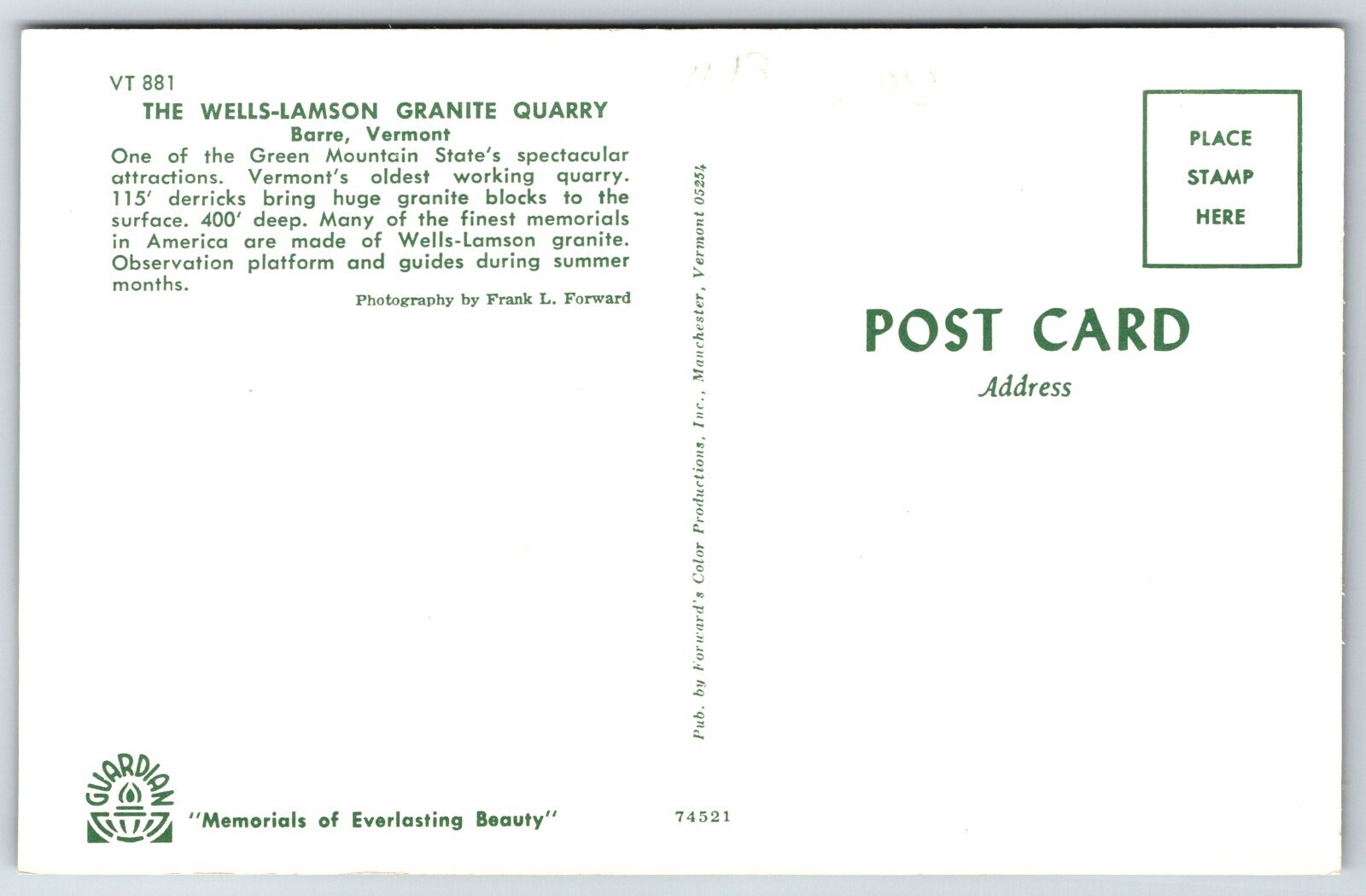 Mining~Barre Vermont~Air View Of The Wells-Lamson Granite Quarry~Vtg Postcard