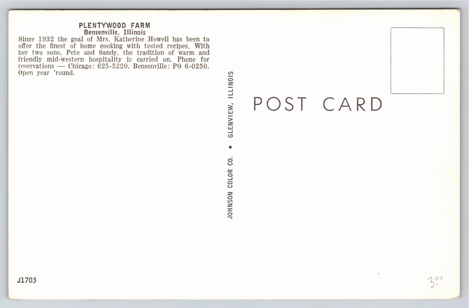 Mining~Plentywood Farm Bensenville Illinois~Vintage Postcard