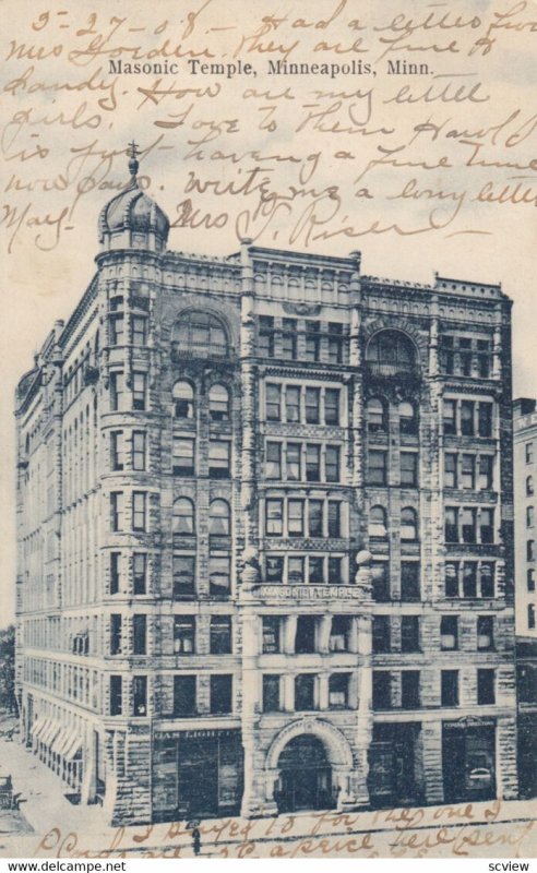 MINNEAPOLIS , Minnesota , 1908 ; Masonic Temple :: Postcard, 3.5" by 5.5", Litho