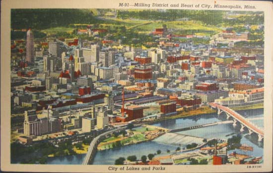 Minneapolis MN Aerial View Postcard