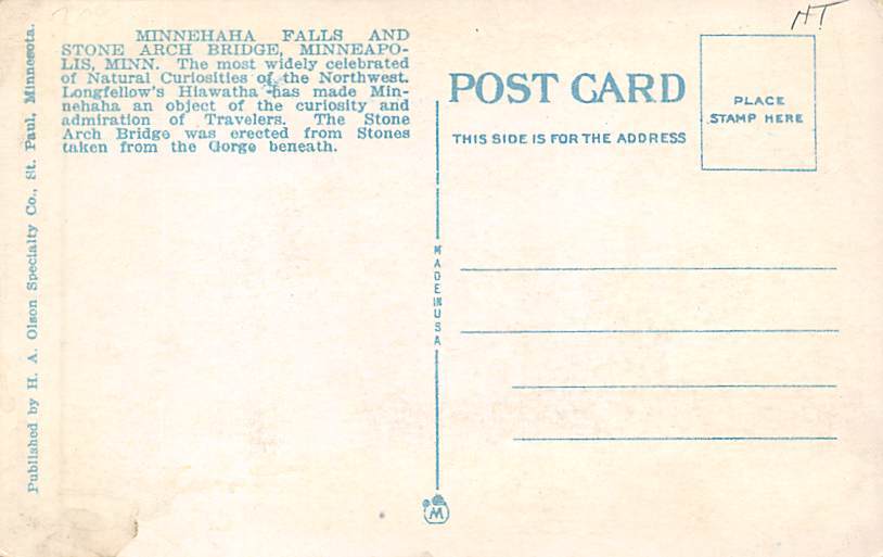 Minnehaha Falls Minneapolis, Minnesota MN Postcard - Unused Grade: 4 Size: R - Regular size: Approx 3 1/2 X 5 1/2 inch (9 cm X 14 cm) Grading Scale: Grade 1 = Perfect corners Grade 2 = Very Minimal corner wear ... Read More