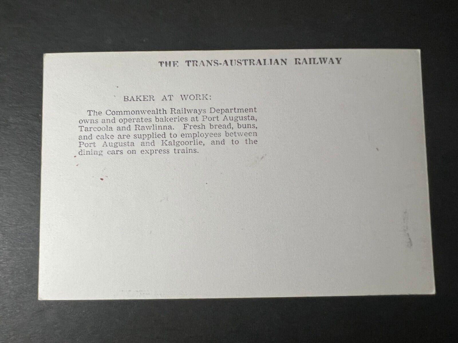 Up for Auction. Priced to Sell. Excellent Condition. - Postal History Cover -Mint Australia Postcard Stationery Trans Australian Railway Baker at WorkDoes NOT Include Description Paper (if applicable)Will combine shipping on multiple purchases when requested.Check out Aztec Collectables Store for the FollowingVintage Mint Postcards and Postcard CoversWar, Philatelic, and Aviation MemorabiliaRare StampsPostal HistoryCoinsAnd More!