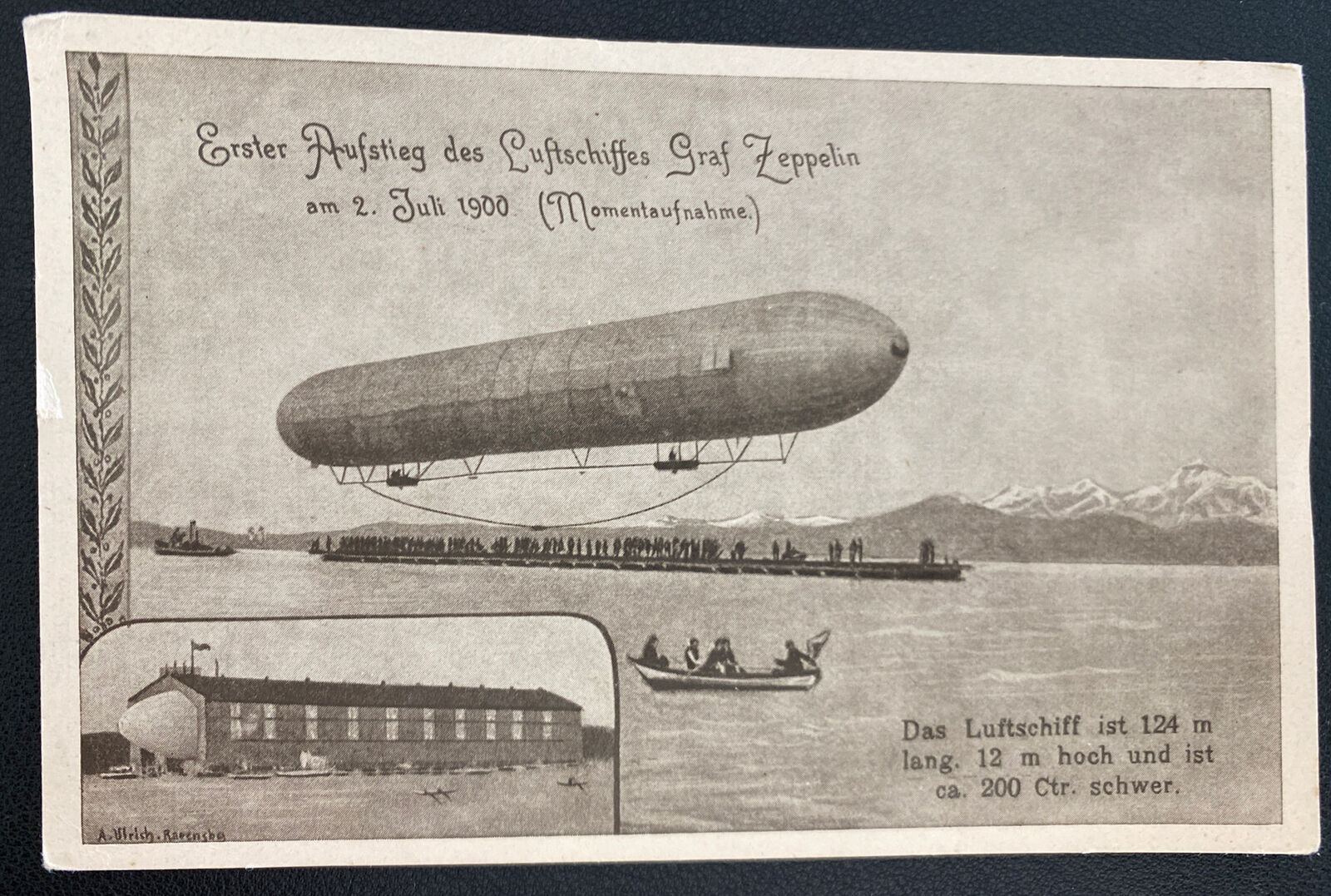 Mint German Picture Postcard Graf Zeppelin 1900 First Climb