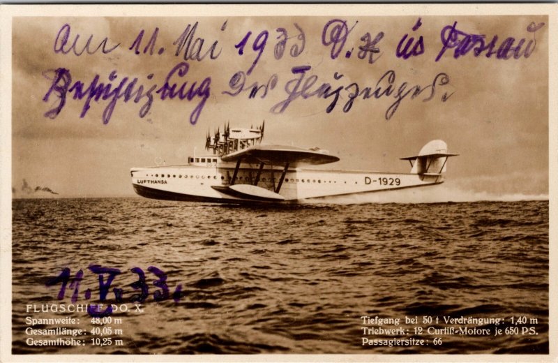 Mint Germany RPPC Postcard Aviation DO X Dornier Hydroplane D 1929