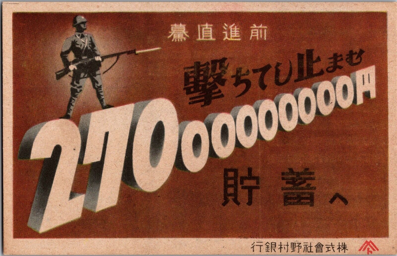 Up for Auction. Priced to Sell. Excellent Condition. - Postcard -Mint Japan Illustration Postcard Japanese Bank Savings Advertising World War II