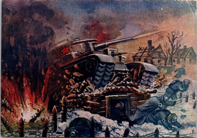Mint Russia USSR Patriotic WW2 Picture Postcard KV TANK through Enemies