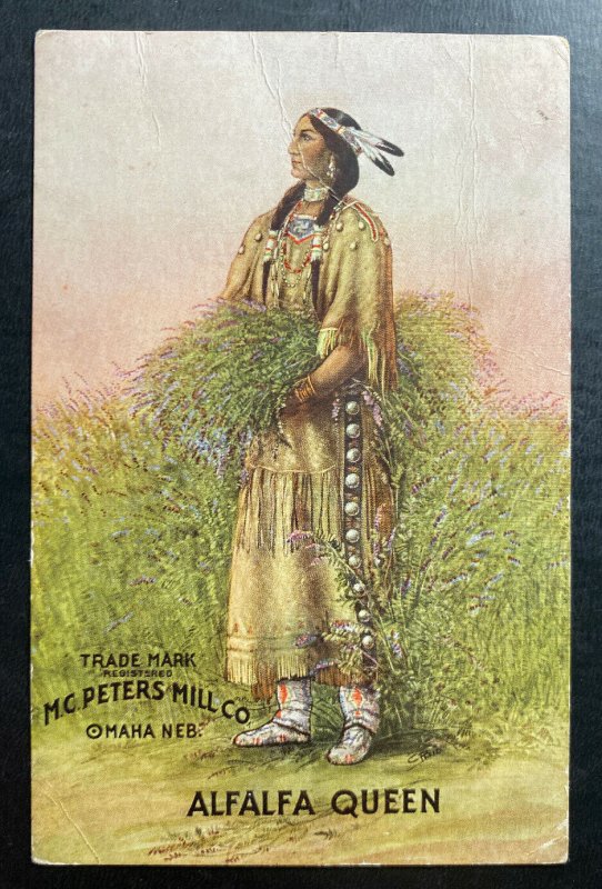 Up for auction is a beautiful Advertising Native Americana postcard from the USA advertising Mc Peters Mill Co Alfalfa Queen . Excellent condition. Mint never used.