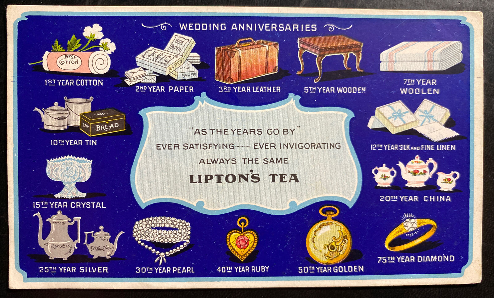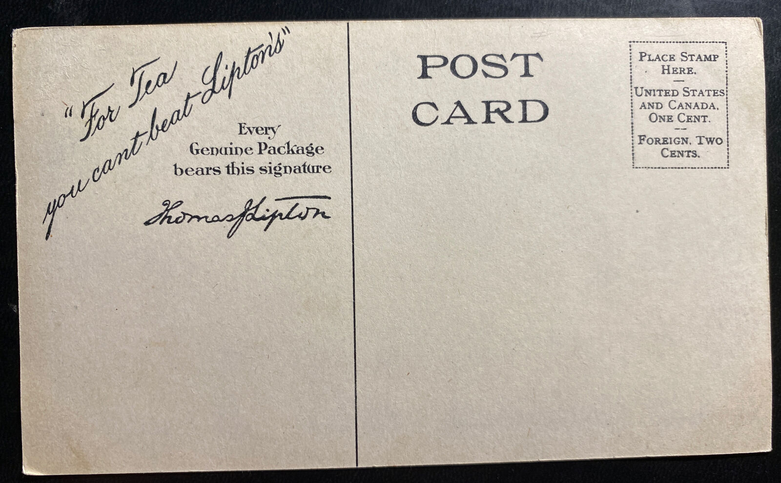 Up for auction is a beautiful Color Advertising Picture postcard PPC from The USA. In Good condition . Priced to sell. Postcard depicts Liptons Tea