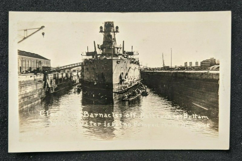 Up for auction is a Mint Vintage Cleaning Barnacles off Battleship Bottom US Navy RPPC.Shipping is $1.50 for US shipping and $3.00 for overseas sales and I will combine shipping on all orders.Free US shipping on orders over $10.00! Thank you! International Orders Over $75 Require Additional $17 Registered Mail Fee to Ensure Safe Delivery. Thank You!