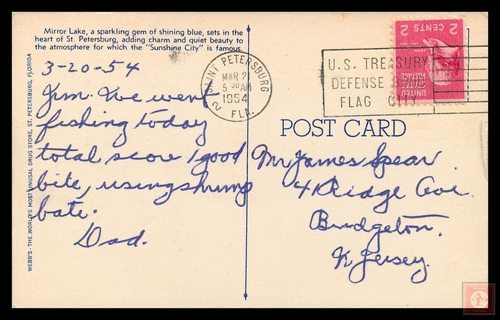 Some scans of postcards result in colored streaks which are a result of the error in scanning and not a fault of the postcard.