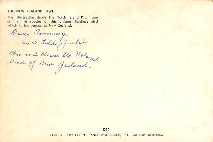 Misc Animals New Zealand Kiwi Writing on back