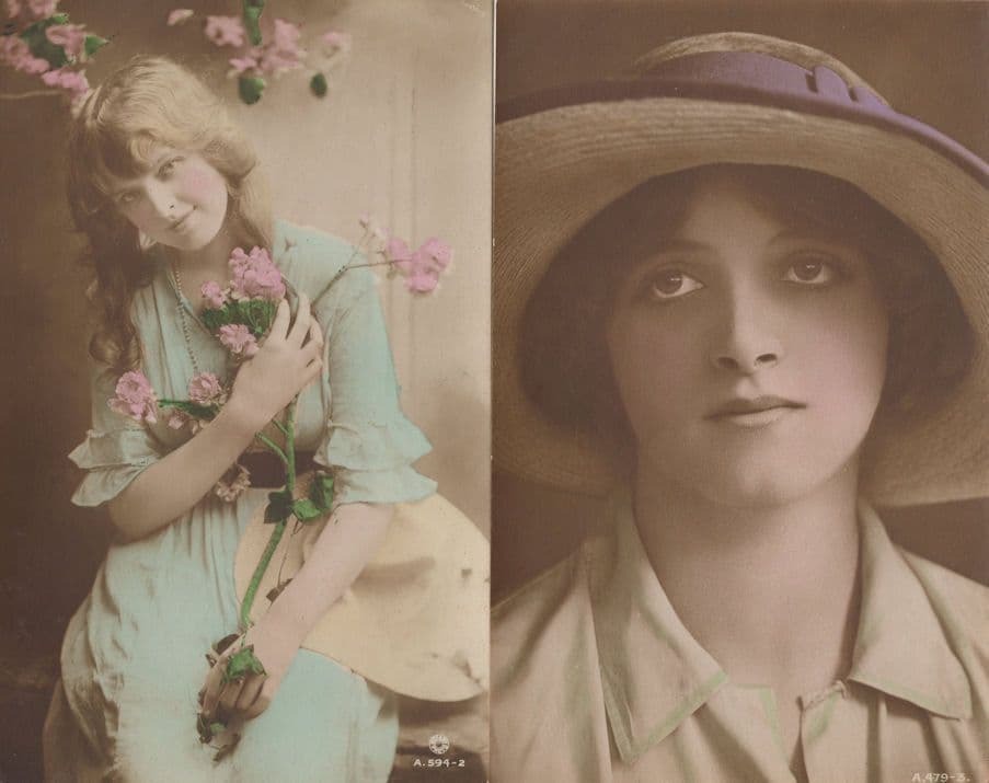 Miss Constance Worth Gladys Cooper WW1 2x Hand Painted Postcard s