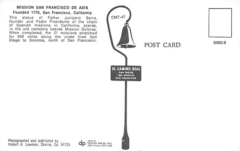 Mission San Francisco De Asis - Grade: 1 Category: Continental Size Postcard, Approx 4 in x 6 in (10 cm x 15.25 cm) Product Size: Regular (or Standard) size: 3 1/2 X 5 1/2 (9 cm X 14 cm) Grading Scale: Grade 1 ... Read More