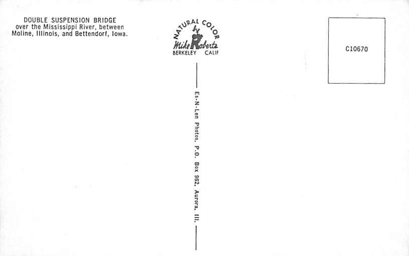 Mississippi River Bettendorf, Iowa Postcard Postal Date: Unused Grade: 2 Size: Regular Size Postcard - approximately 3 1/2 inch x 5 1/2 inch (9 CM x 14 CM) Grading Scale: Grade 1 = Perfect corners Grade 2 = V ... Read More