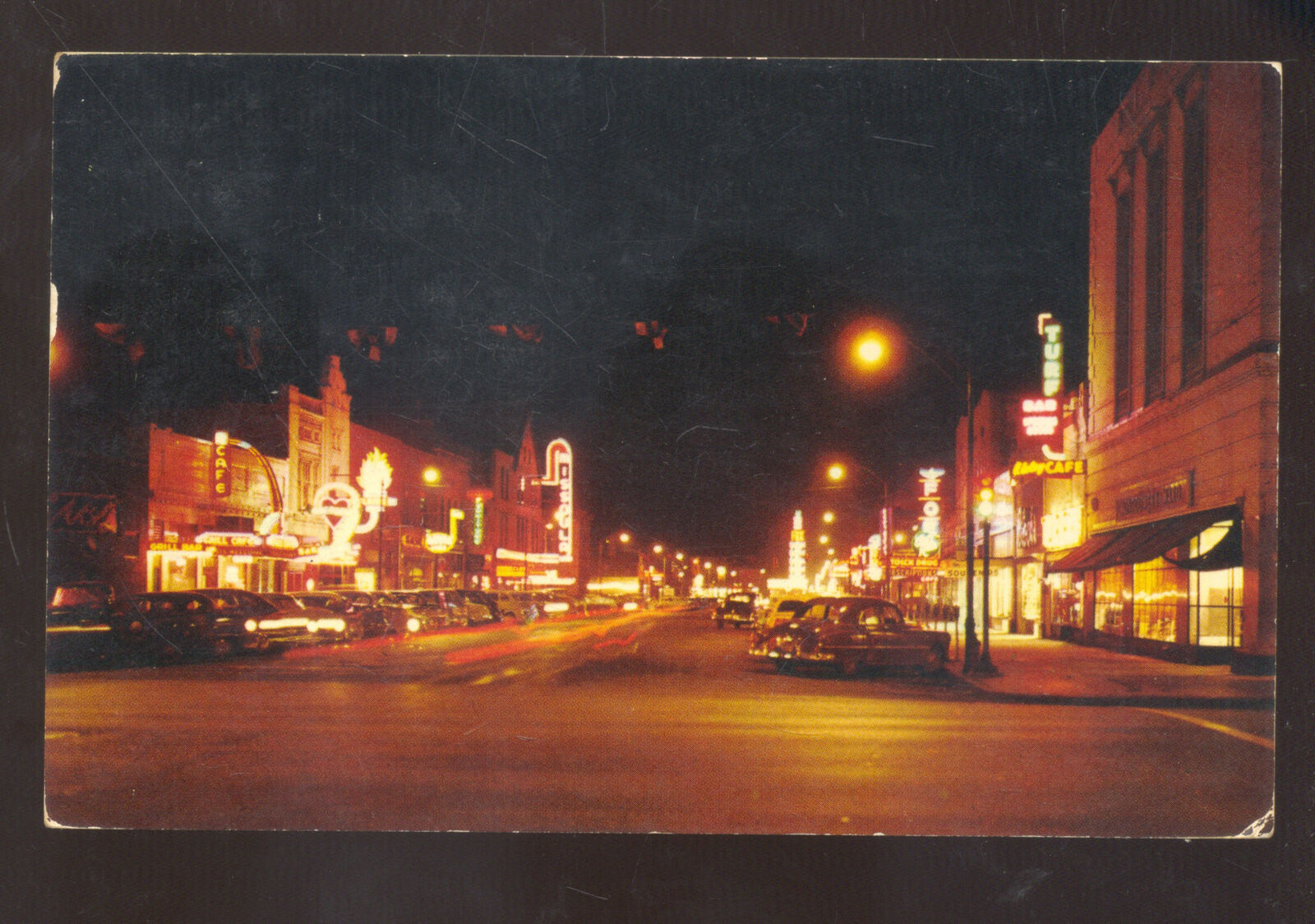 MISSOULA MONTANA DOWNTOWN STREET SCENE AT NIGHT CARS VINTAGE POSTCARD