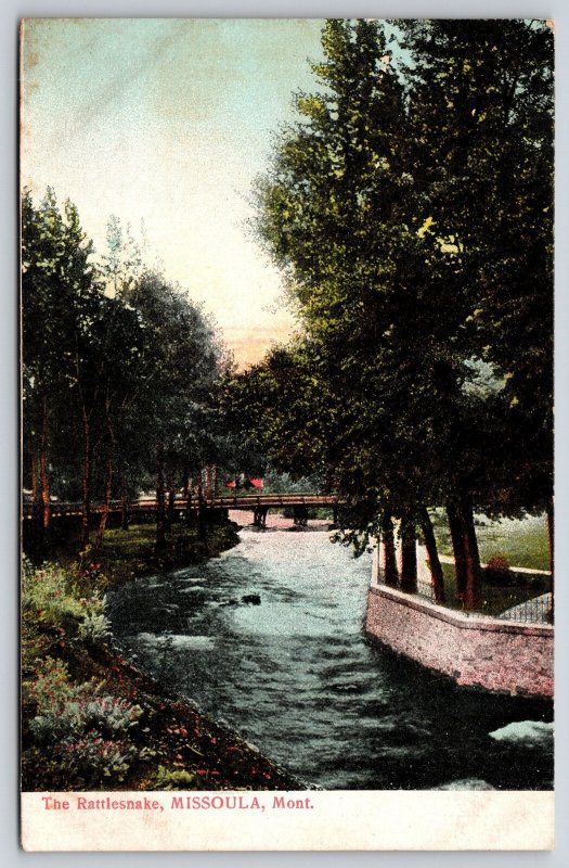 Missoula Montana~Rattlesnake River~Wall & Bridge~1909 Postcard