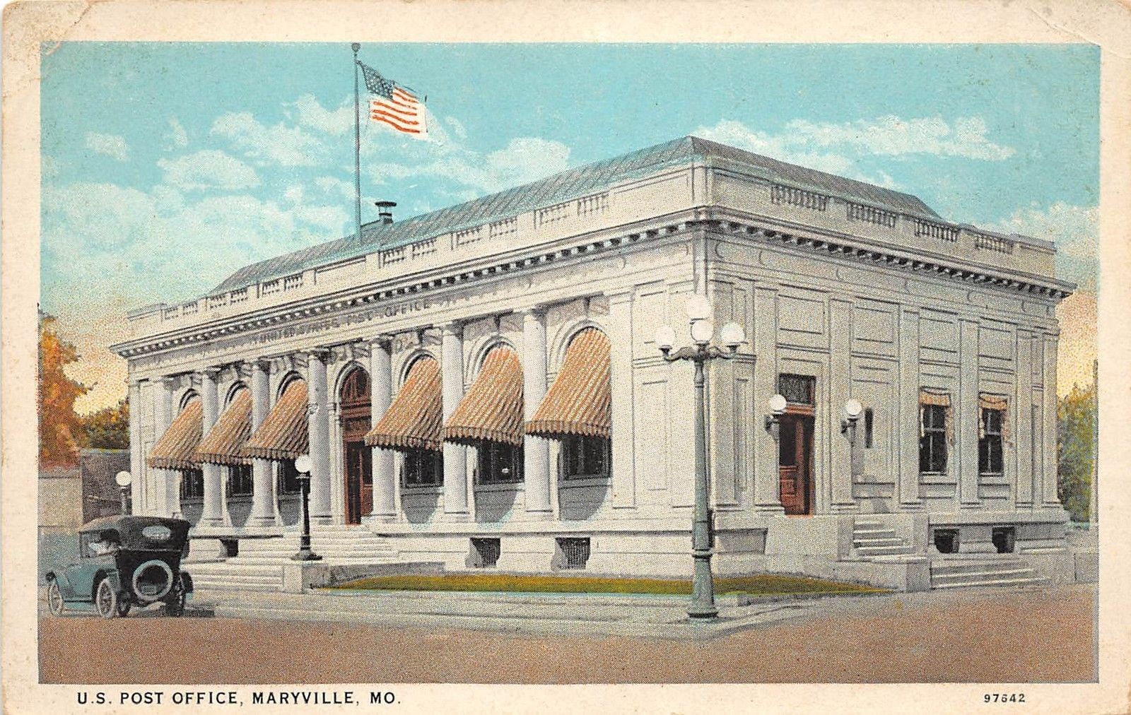 Missouri Mo Postcard c1910 MARYVILLE U.S. Post Office Building Car