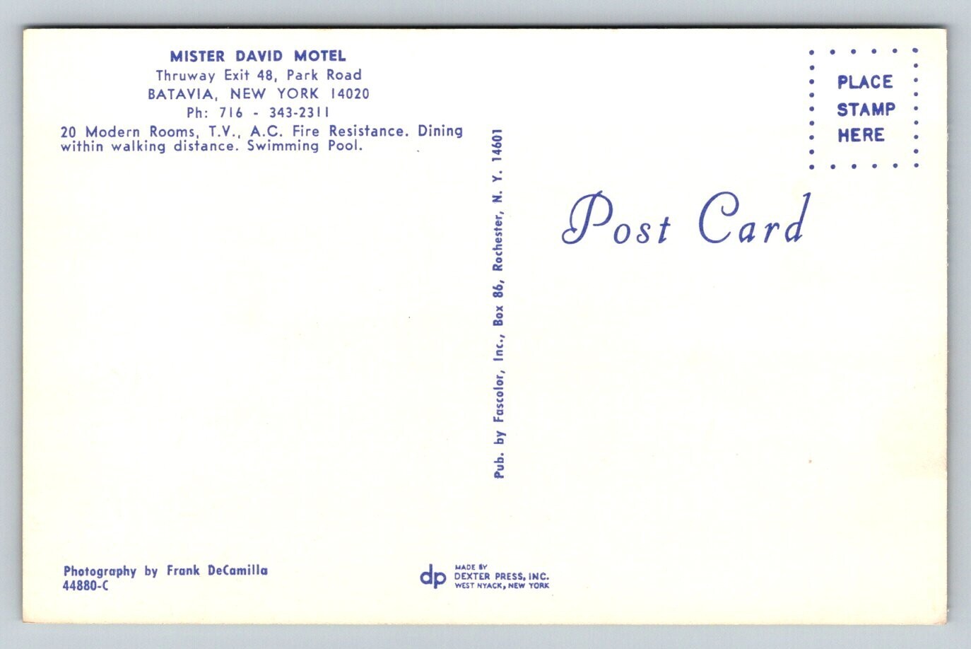 Mister David Motel Batavia New York Postcard