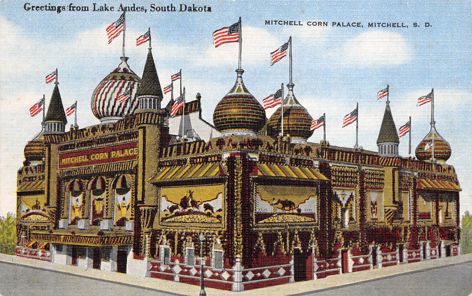 Mitchell South Dakota 1940s Postcard Mitchell Corn Palace Lake Andes