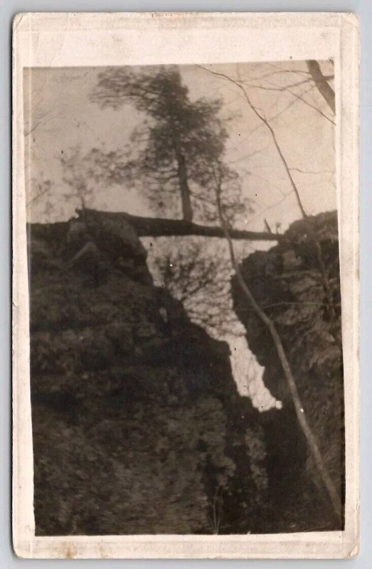 MN Lonesome Tree Optical Illusion Sky Falls Snow Cliffs RPPC Postcard G37