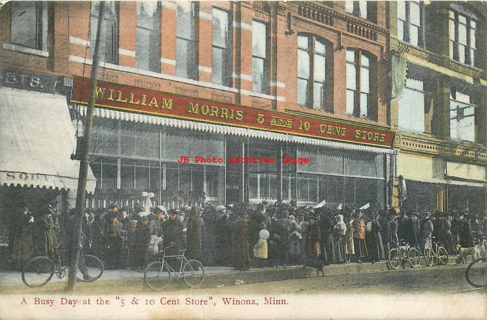 MN, Winona, Minnesota, William Morris Five & Dime Store, 1909 PM Product Photo Click Image for Larger Preview Product Information This is a nice vintage early printed hand colored postcard showing a scene of the Wil ... Read More