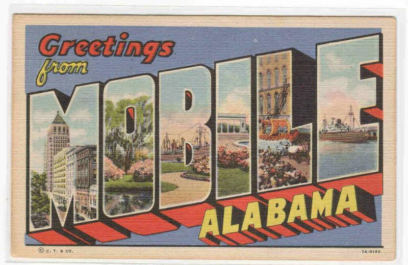 Mobile Alabama Large Letter 1949 linen postcard