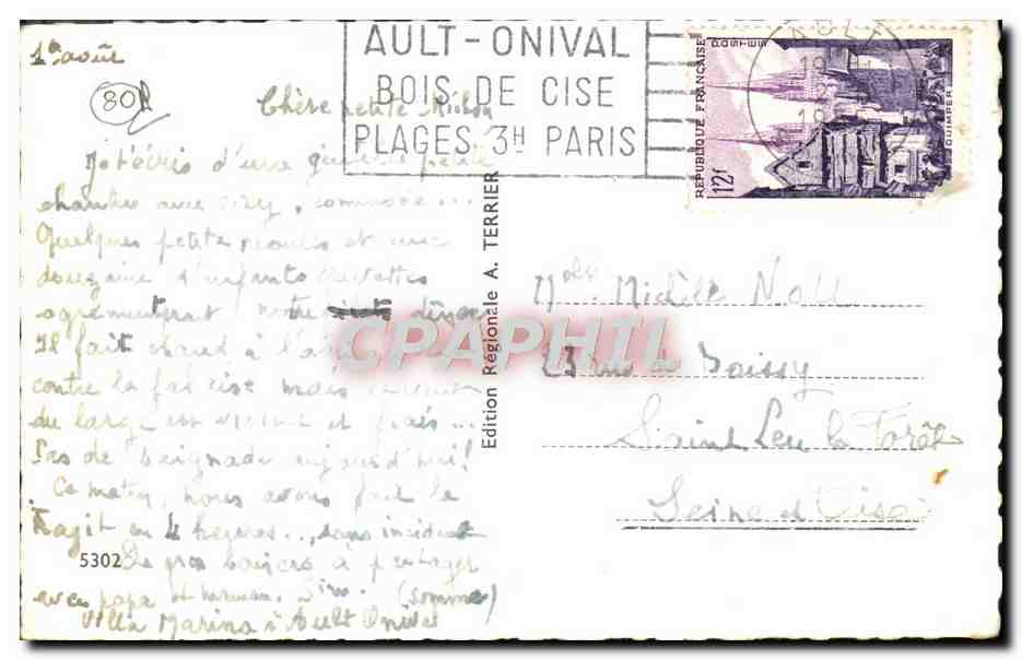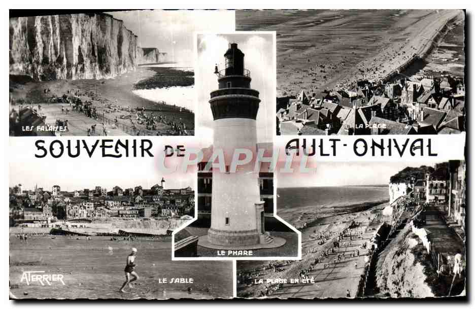 Modern Postcard Ault Onival cliffs sand beach in summer