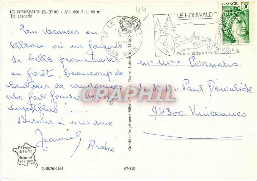Modern Postcard Hohwald B Rhine waterfall