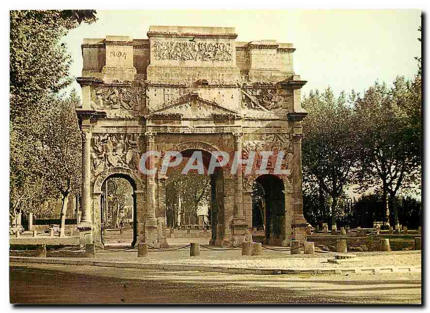 Modern Postcard in Orange high Arc de Triomphe after Victory Cesar