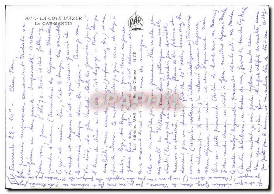 Modern Postcard La Cote D & # 39Azur Cap Martin