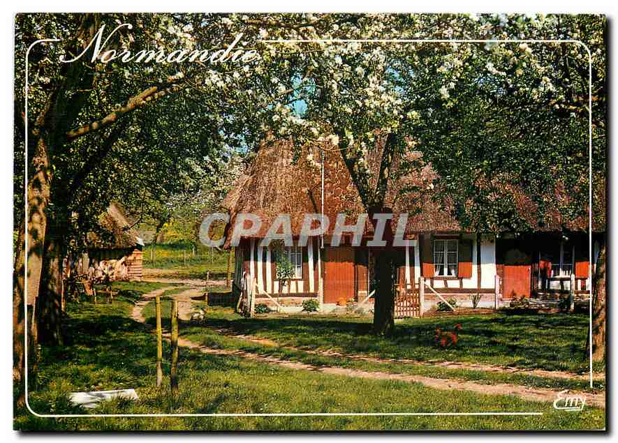 Modern Postcard Normandy Picturesque Normandy Chaumiere in spring
