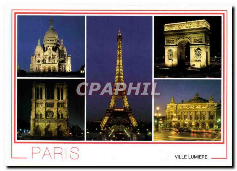 Modern Postcard Paris Sacre Coeur Notre Dame Arc de Triomphe Eiffel Tower Opera