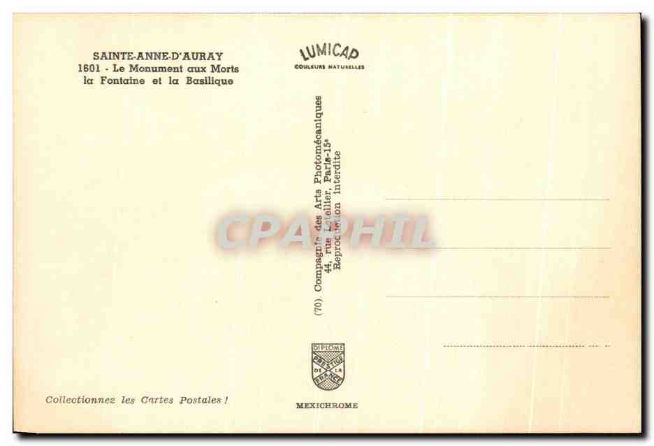 Modern Postcard St. Anne D Auray The War Memorial