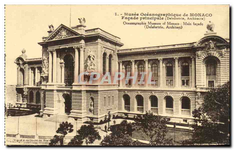 Monaco Oceanographic Museum Old Postcard New Facade main aquarium