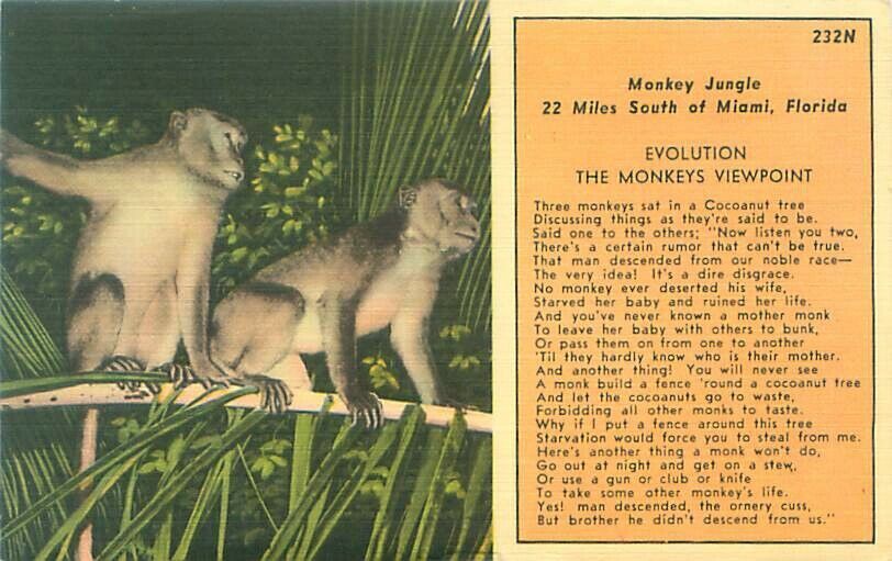 Monkey Jungle Miami Florida Evolution: The Monkey's Viewpoint Linen PostcardNo major flaws.Ships fast.