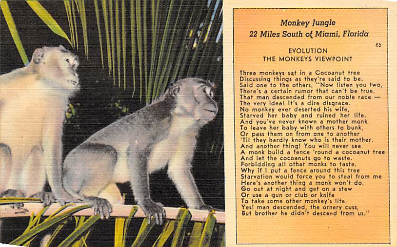 Monkey Jungle Miami, Florida, USA Monkey Postcard Unused,