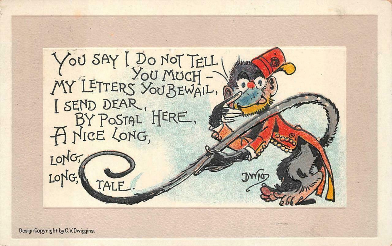 MONKEY MAIL LONG TAIL COMIC ARTIST SIGNED DWIG EMBOSSED POSTCARD 1913
