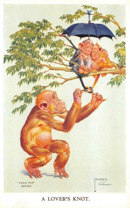 MONKEY UMBRELLA ROMANCE COMIC ARTIST SIGNED LAWSON WOOD POSTCARD