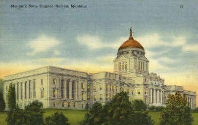 Montana State Capitol in Helena, Montana Postcard - Unused Grade: 1 Size: R - Regular size: Approx 3 1/2 X 5 1/2 inch (9 cm X 14 cm) Grading Scale: Grade 1 = Perfect corners Grade 2 = Very Minimal corner wear, ... Read More