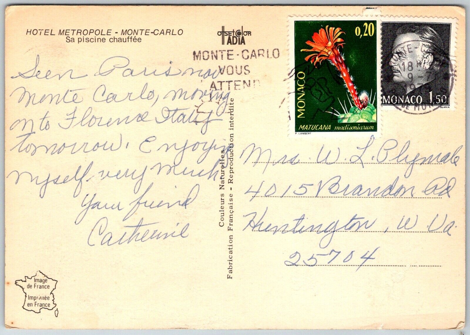 Monte Carlo Monoco 1978 Continental Postcard Hotel Metropole Pool