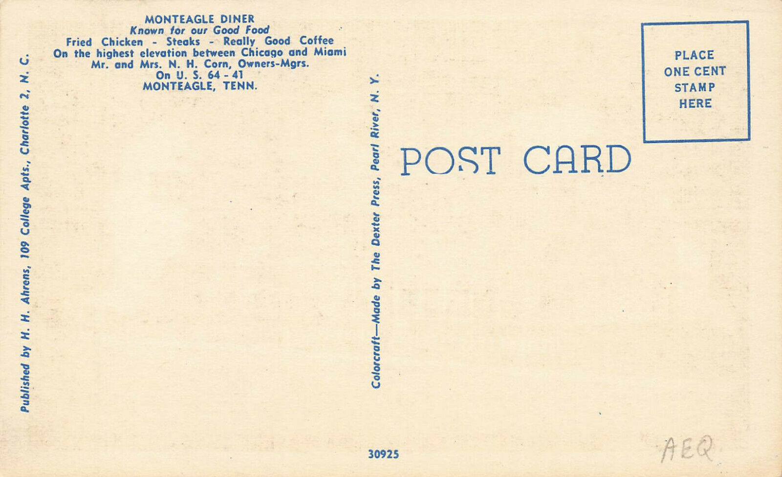 Monteagle TN "Monteagle TN Diner" Dexter Press Linen Postcard.If you buy more than one item 'buy it now' Please use the 'add to basket' function as this will activate the combined shipping rate.For More Great Postcards, Trade Cards, Covers, etc. Visit our Hip Store: popcornjohn.cominkfrog terapeak
