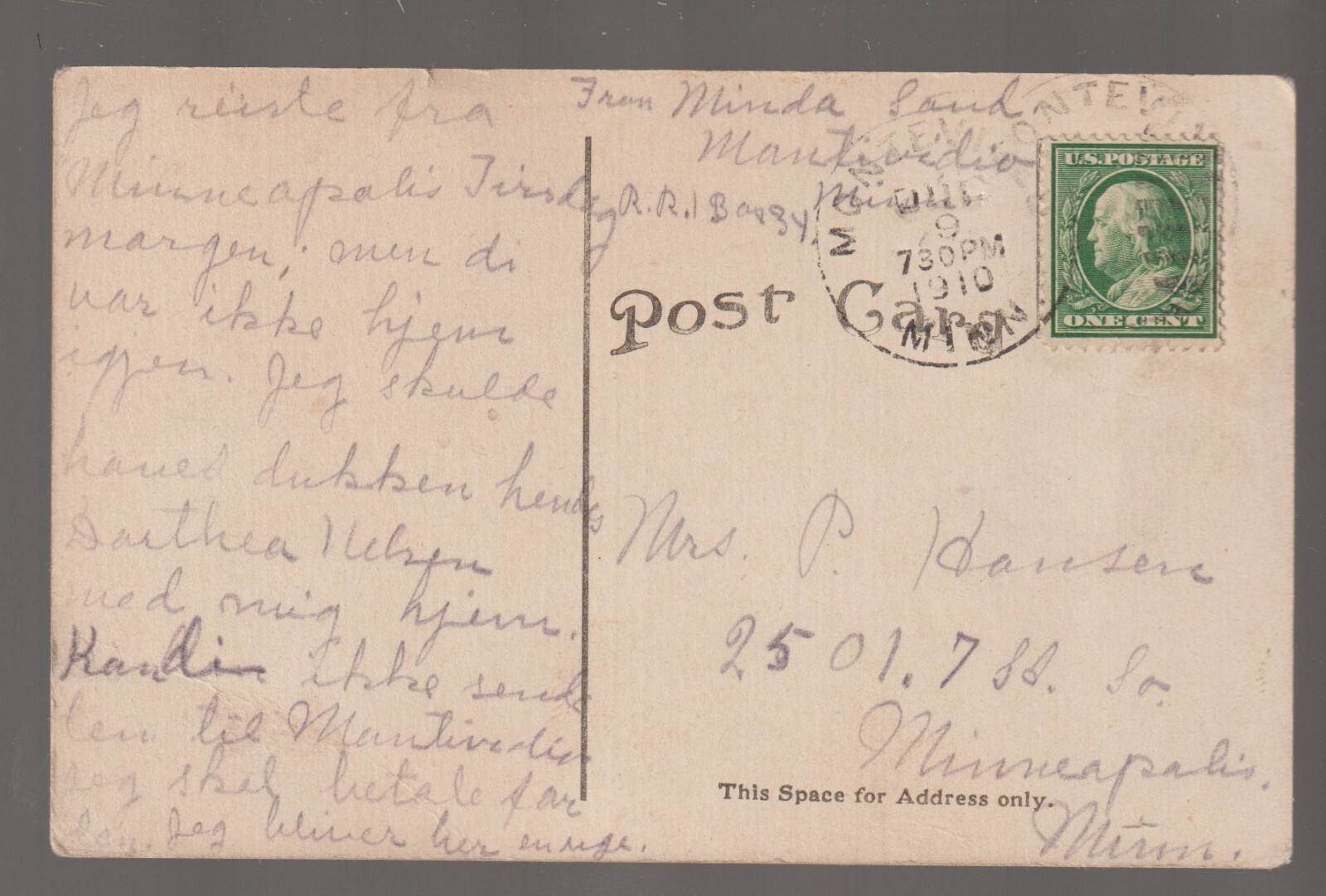 Here is a nice postcard view showing CARNEGIE LIBRARY MONTEVIDEO MINN. on the front postmarked in 1910. It is in GOOD CONDITION with light wear, smudging, creasing------------SEE THE SCANS. THANKS FOR BIDDING! FOR BUY IT NOW CARDS PAY ONLY ONE SHIPPING CHARGE NO MATTER HOW MANY CARDS YOU BUY---------JUST ADD THE PURCHASE to the SHOPPING CART and when you are done just PAY FOR ALL CARDS AT ONCE with just ONE SHIPPING CHARGE!! Shipping is $1.50 to US DESTINATIONS---packages are shipped Hip STANDARD SHIPPING with TRACKING NUMBERS! ******************Hip Standard shipping envelope is NOT ACTIVELY TRACKED BY THE USPS...it is only passively scanned as it goes by a scanner on a conveyor. MOST items shipped this way HAVE FEW IF ANY TRACKING UPDATES---and Hip NOTES THIS is their disclaimer about the shipping. Quite a few HAVE NO TRACKING NOTED on Hip---only that the TRACKING NUMBER was given. Most show up fine, but there is no record of them being shipped. THIS IS A PROBLEM THAT Hip NEEDS TO ADDRESS! If you would like better tracking, it will be around $4 to be shipped 1st class package+++++++++++++++++++++++NO FOREIGN SHIPPING ON THESE CARDS! 14 Day Return policy if item is Grossly different than the description and the item is returned in the same condition as purchased.