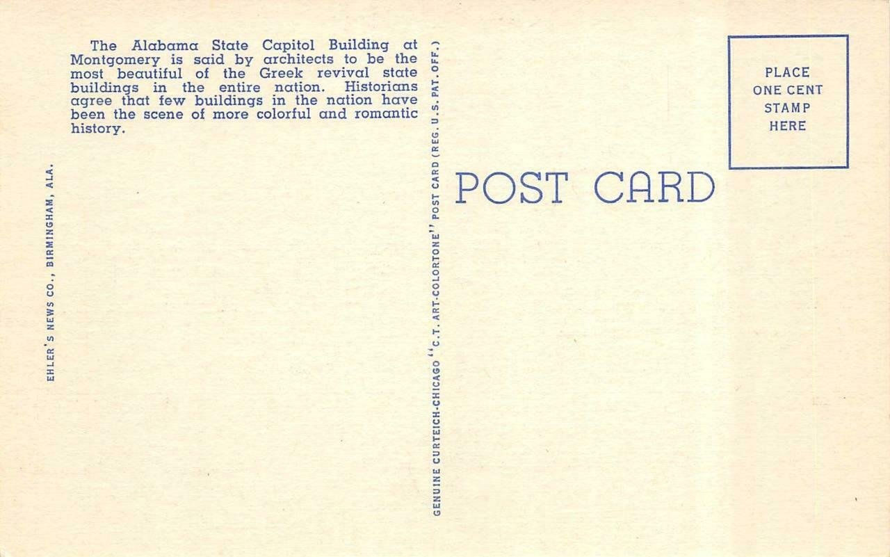 Montgomery, al alabama state capitol c1940's curteich linen postcard