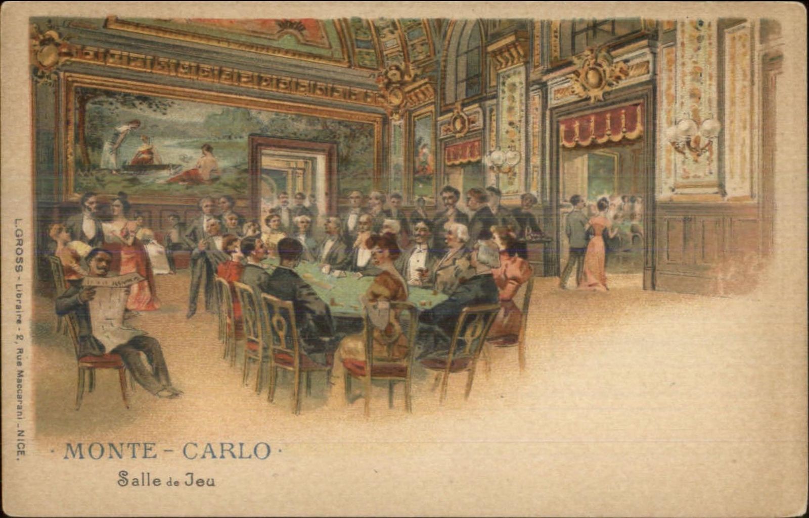 Montre Carlo Salle de Jeu Gambling Hall c1900 Postcard FINE LITHO