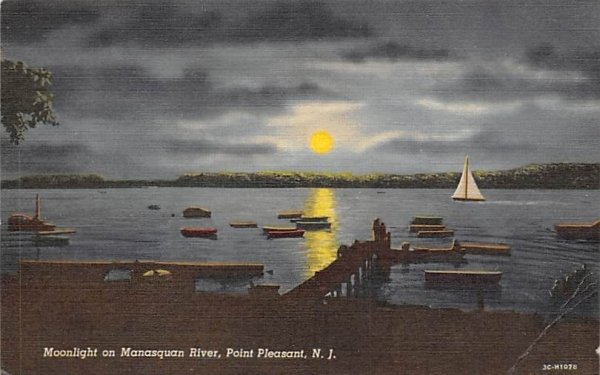 Moonlight on Manasquan River Point Pleasant, New Jersey Postcard ,