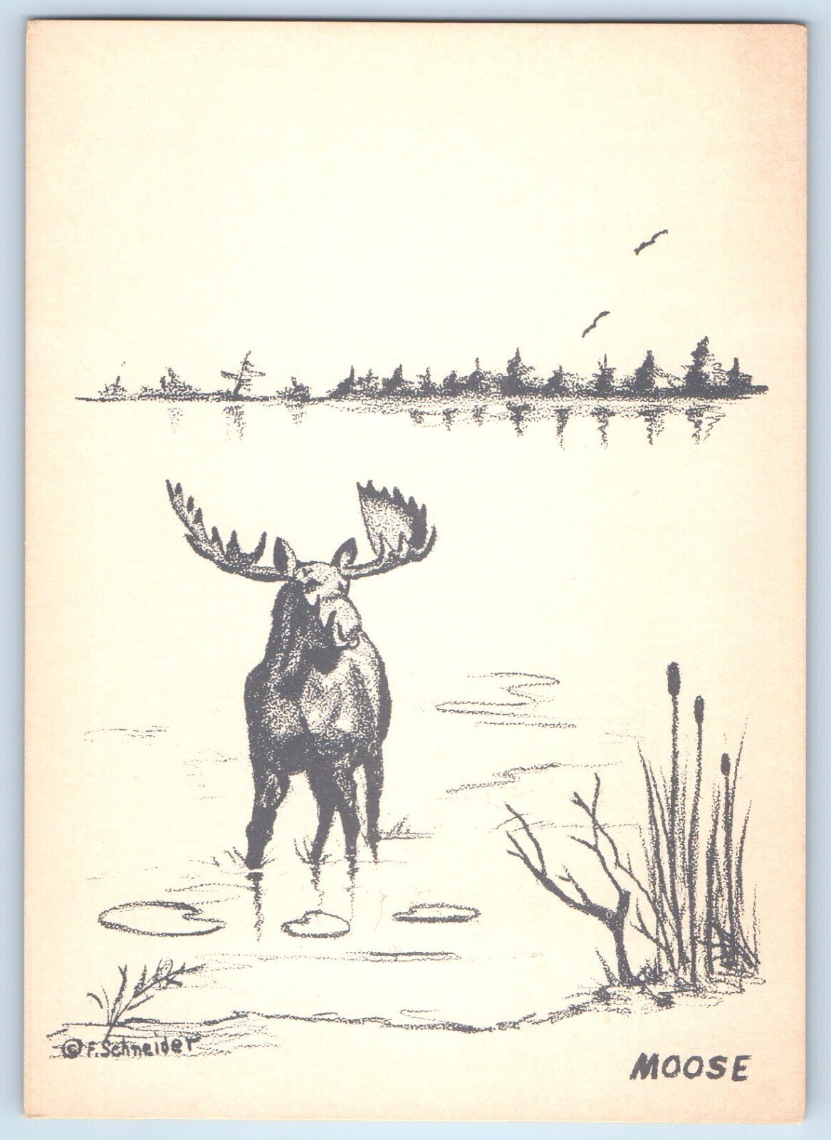 Moose Original Sketch From Northwoods By Frances Schueider Signed Postcard
