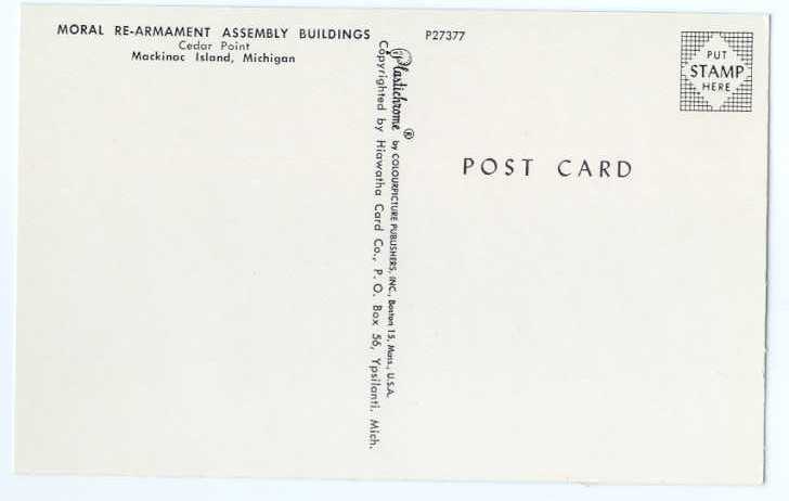 Moral re-armament bldgs cedar point mackinac islands michigan miType of Postcard: PRE ZIP CODE STANDARD SIZE CHROME