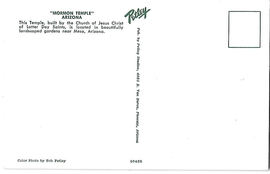 Mormon Temple, Mesa Arizona & Beautiful front gardens. Petley cardSeller Information