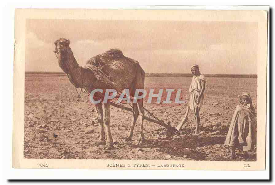 Morocco Old Postcard A plowing (dromedary camel)