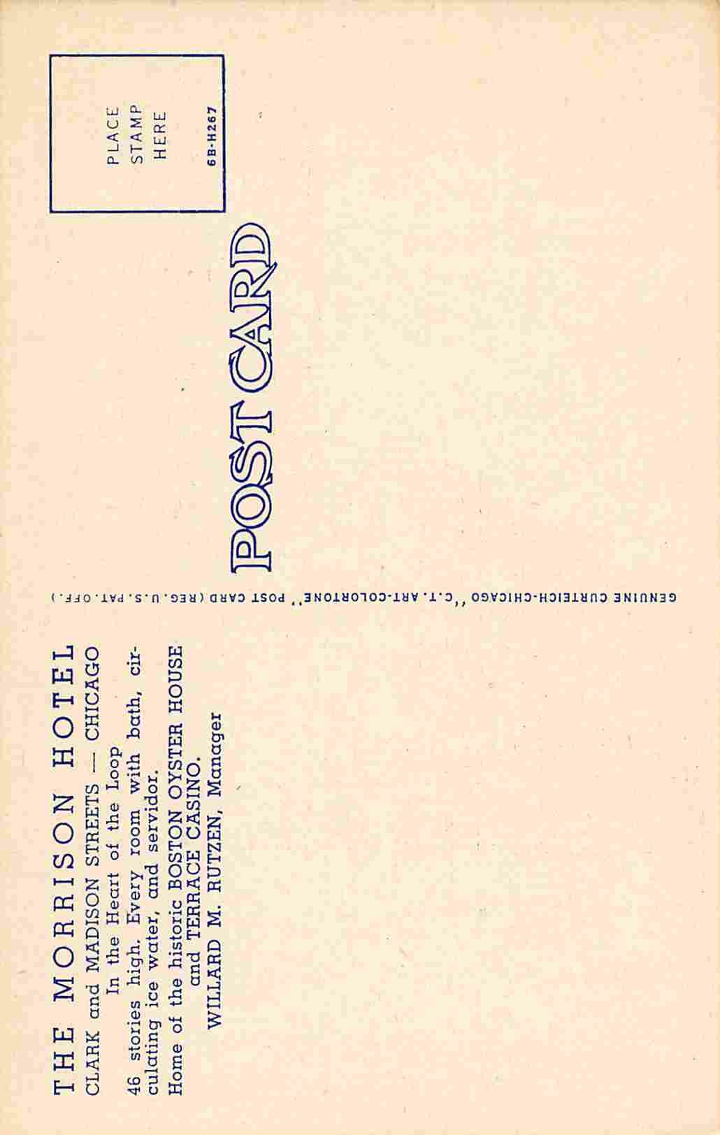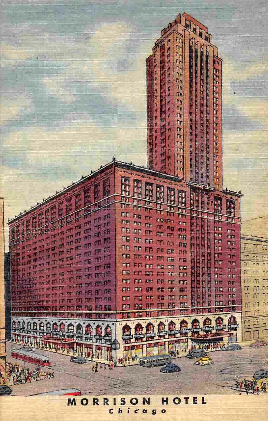 Morrison Hotel Chicago Illinois 1940s linen postcard